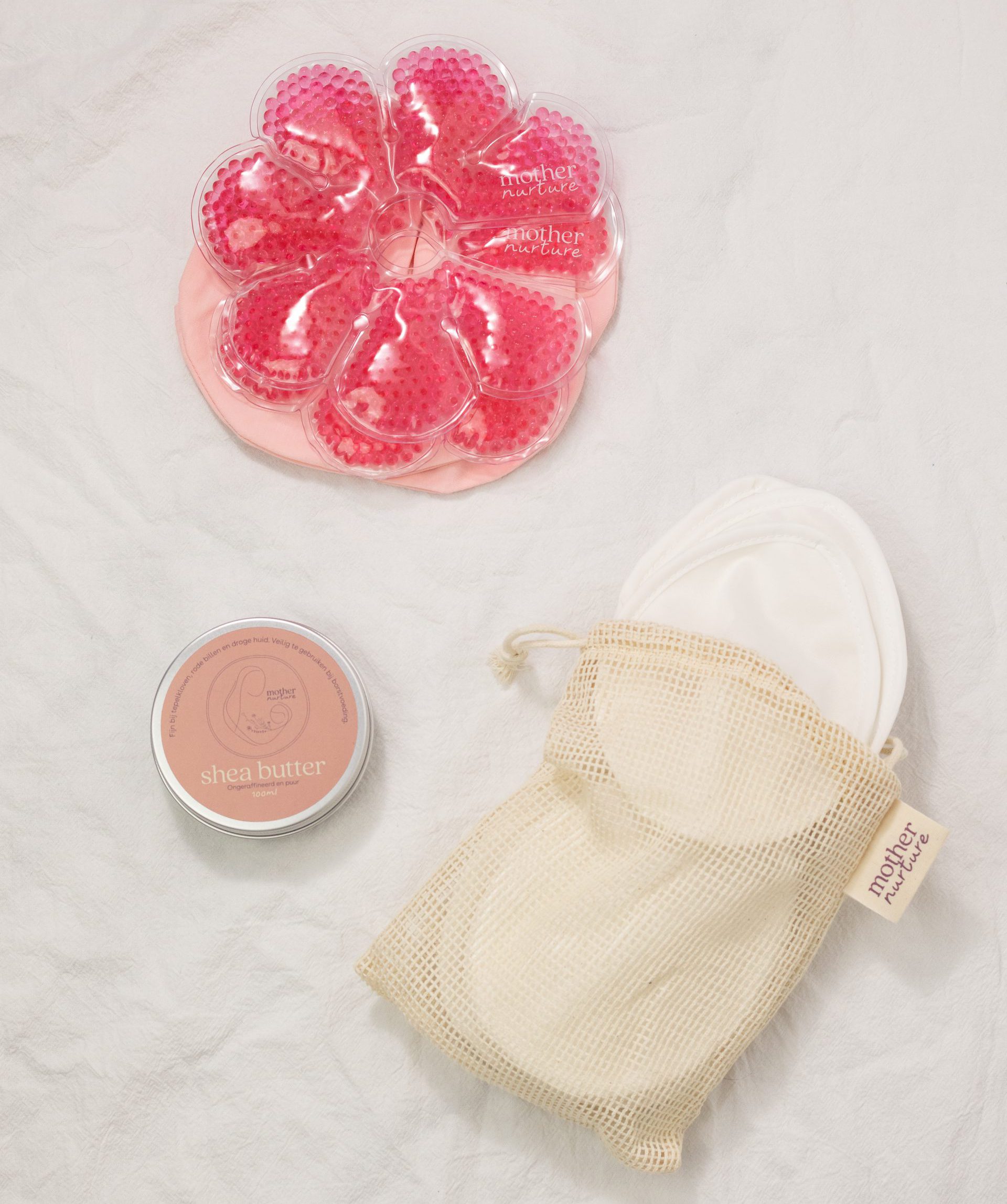 Lees hieronder meer over de inhoud van de box en ontdek hoe elk product jou ondersteunt in de eerste weken na de bevalling.