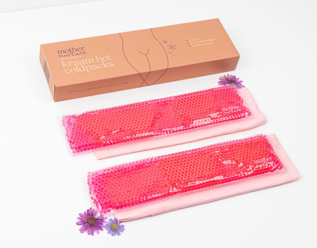 Deze coldpacks zijn dé lifesavers in de eerste week na je bevalling. Je krijgt er zelfs twee in de box zodat je nooit zonder zit. Je kunt ze gebruiken in je ondergoed als je pijn hebt door de bevalling, zowel voor hechtingen, zwellingen als aambeien. Ze blijven bevroren soepel en koelen van voor tot achter. Gebruik ze met het wasbare hoesje, of haal deze er na enkele minuten vanaf voor een intensere koeling. En nog een pluspunt: je kunt ze opwarmen. Erg fijn bij buikkrampjes van je baby.