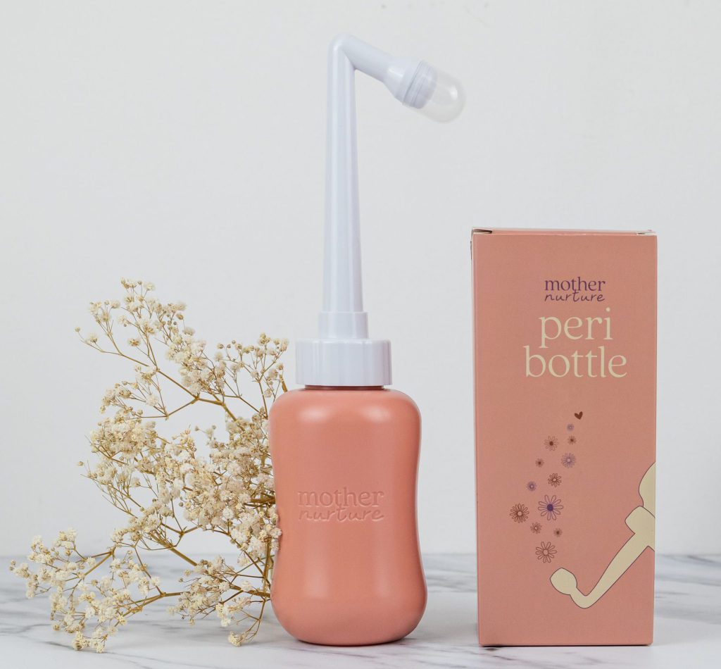 De peri bottle is erg prettig bij het plassen. Je bloedt namelijk net zoveel als na een vaginale bevalling en douchen is meestal lastig na een keizersnede. Dan is tussendoor spoelen met lauw water heel fijn.