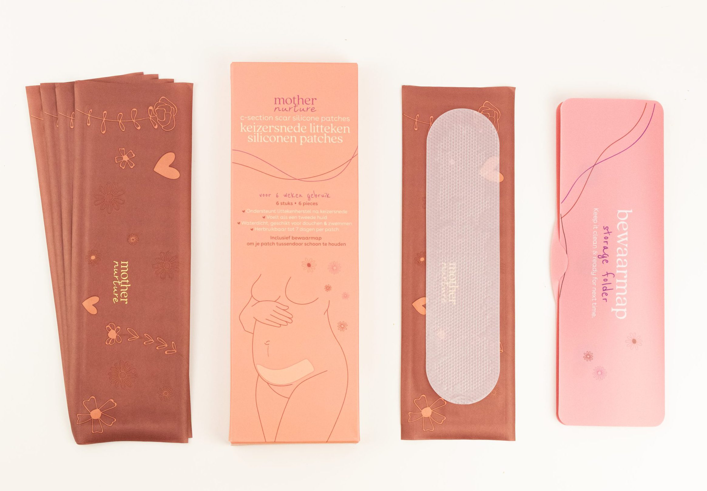 Onze boxen zijn ontworpen voor álle nieuwe moeders, of je nu een natuurlijke bevalling of een keizersnede hebt gehad. Elk product is gekozen om je herstel en comfort te bevorderen.
